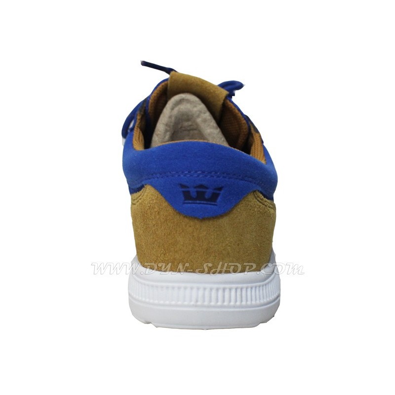 Estas zapatillas de la marca Supra Vienen en color azul y parte trasera en marron, son tela y regilla. Detalles en color marron y suela blanca. Zapatillas que no pesan nada y super flexibles. Puedes combinarlos con pantalones estrechos, rectos o pantalones cortos.