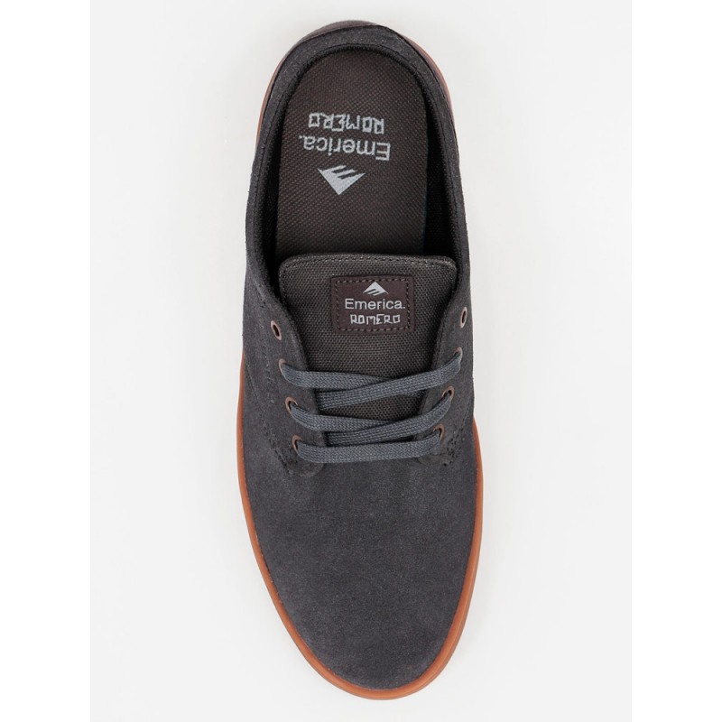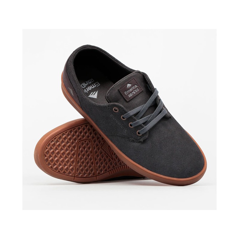 La marca de zapatillas Emerica shoes vienen en color gris y suela en caramelo.