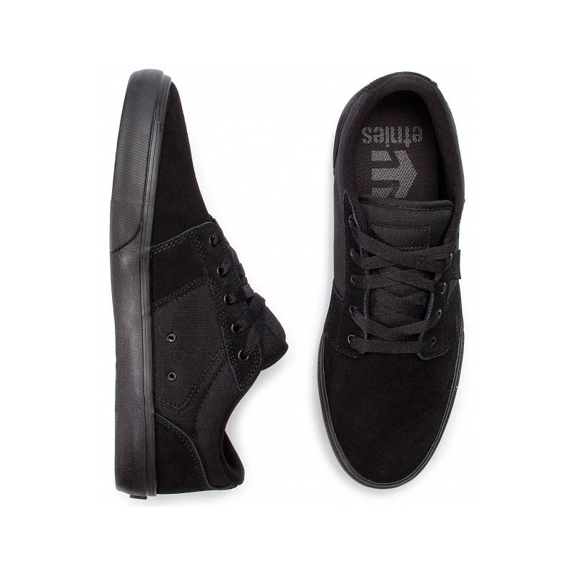 Vienen enteros de tela vuelta de color negro y con la suela en color negro. Logo de Etnies en color negro y el forro en negro también.