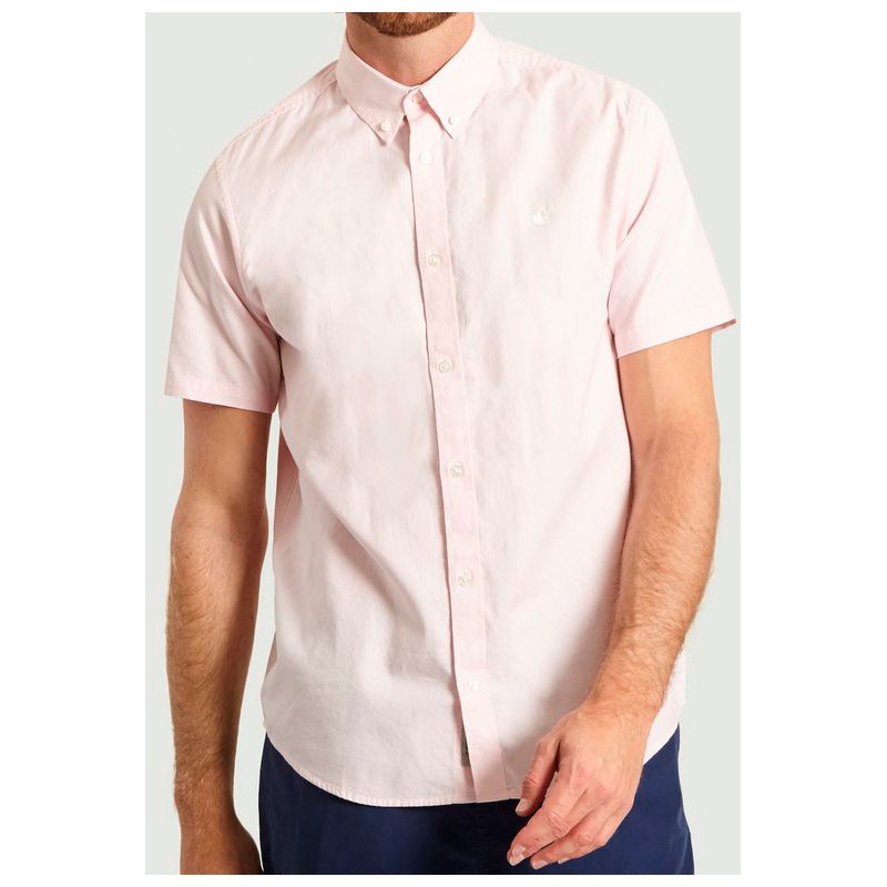 Camisa de algodón rosa Cadillac, cuello formal con botones, manga corta, cierre con botones en la parte delantera, detalle de bordado en el lado izquierdo del pecho, corte recto, dobladillo curvo Elaborado con orgullo en los EE. UU., Carhartt es la marca americana que lleva el estilo de cuello azul al corazón de la escena del estilo europeo.