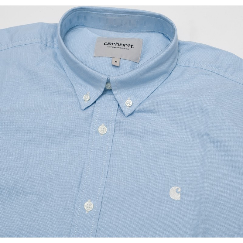Camisa de algodón rosa Cadillac, cuello formal con botones, manga corta, cierre con botones en la parte delantera, detalle de bordado en el lado izquierdo del pecho, corte recto, dobladillo curvo Elaborado con orgullo en los EE. UU., Carhartt es la marca americana que lleva el estilo de cuello azul al corazón de la escena del estilo europeo.