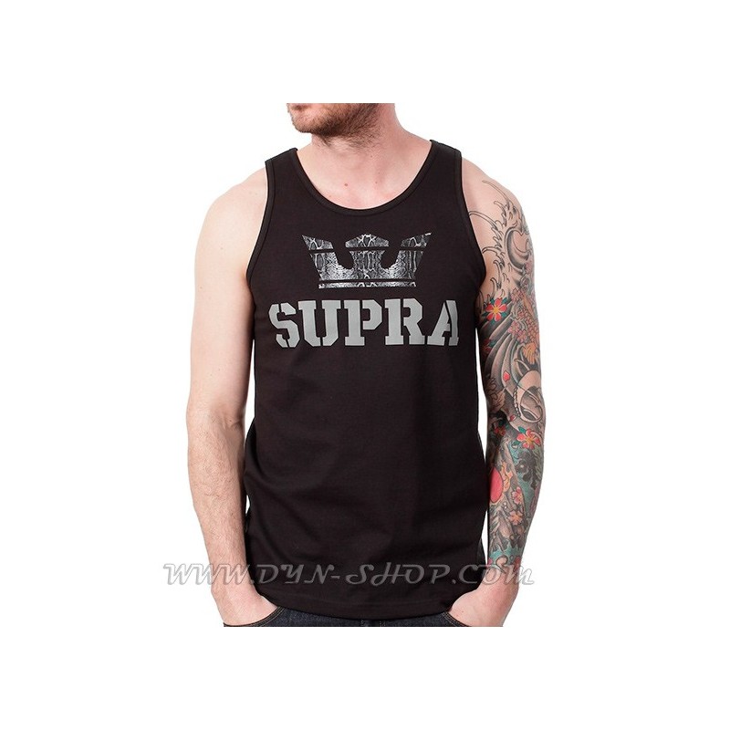 Camiseta negra Supra con el nombre y logo de la marca en el pecho, en color gris y efecto serpiente.