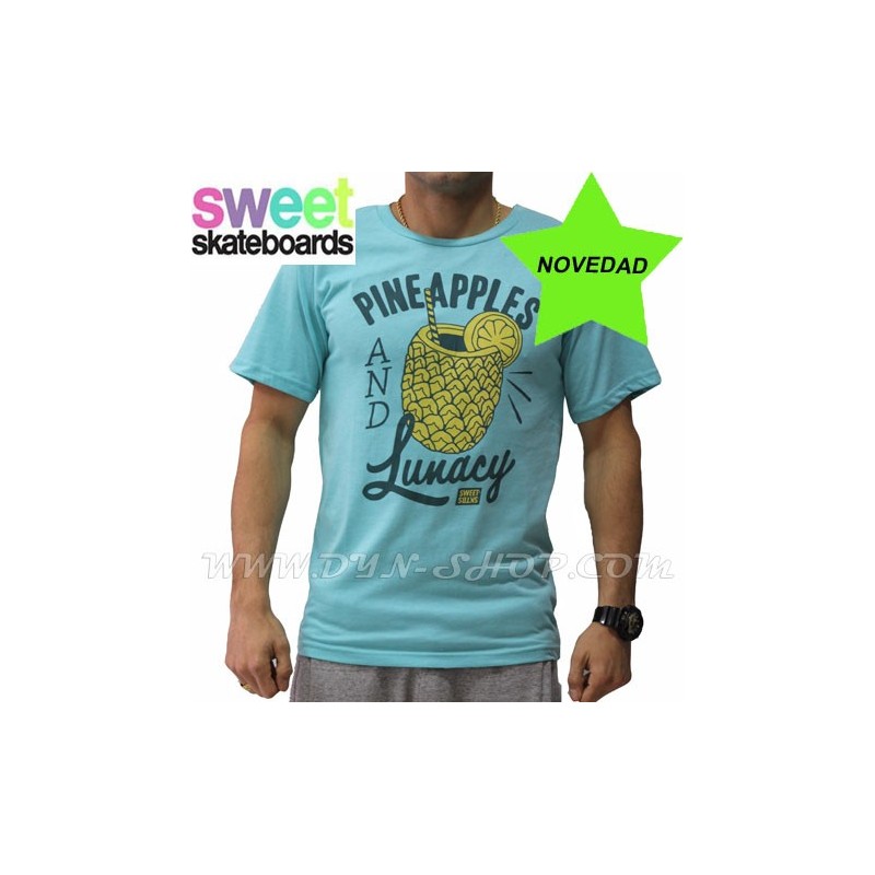 Camiseta Sweet Skateboards, viene en color verde agua con estampacion en color amarillo y verde oscuro.