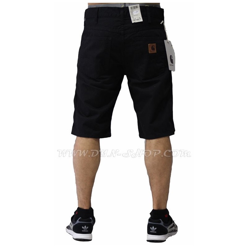 Esta Bermuda Carhartt wip son de tela, vienen en color negro lisas con pespuntes en mismo color. Detalle de la marca en el bolsillo trasero chapa de piel marron.