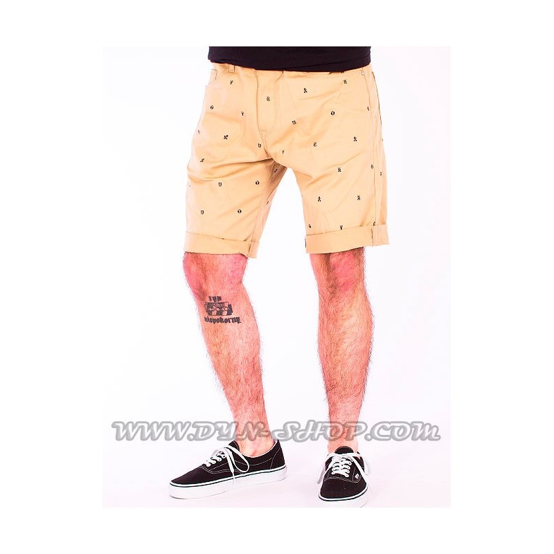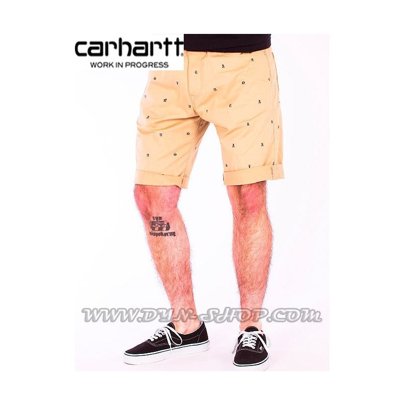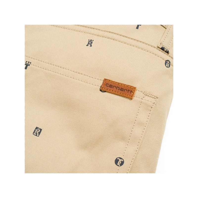Bermudas Carhartt wip de tela en color beis y estampaciones en color azul marino.