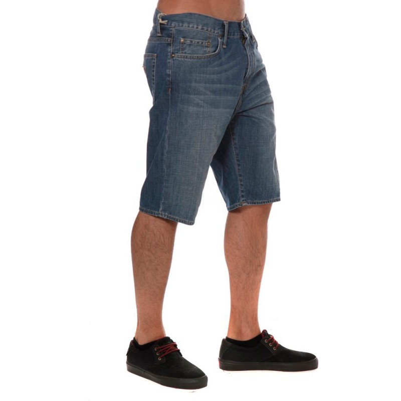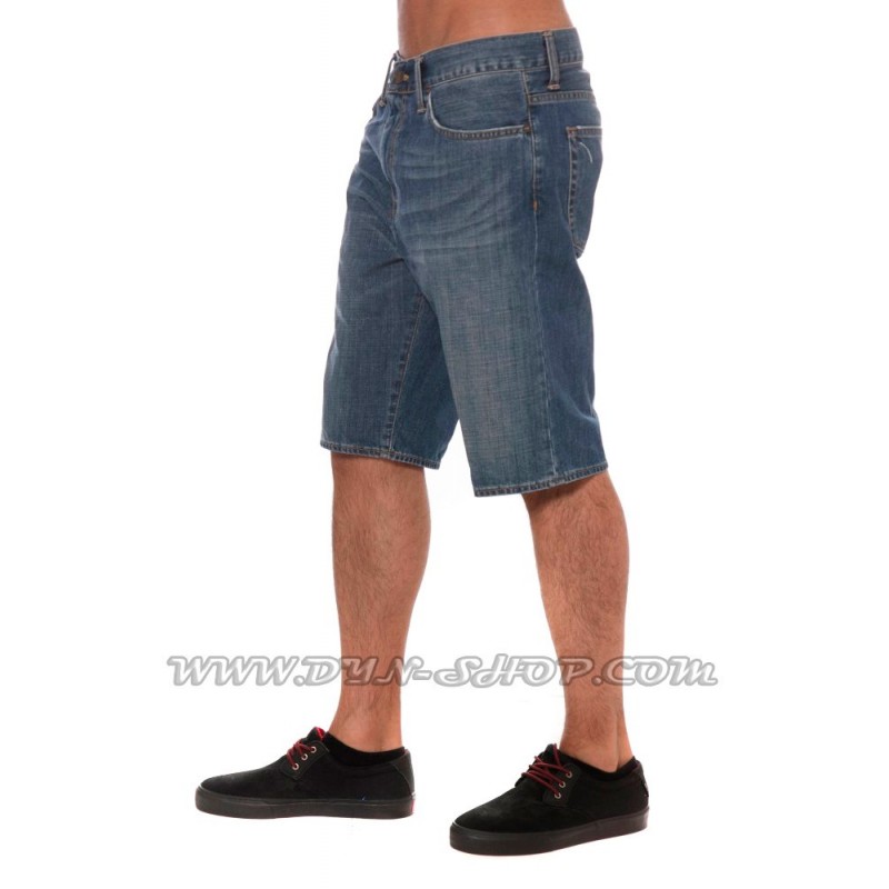 Esta Bermuda Carhartt wip son vaqueras, vienen en color azul claro con pespuntes en amarillo. Detalle de la marca en el bolsillo trasero chapa de piel marron.