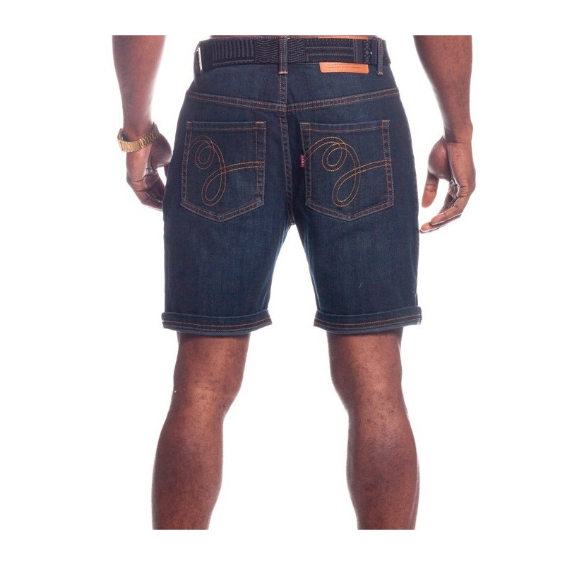 Estas bermudas Grimey son un modelo de pantalon recto. Es un pantalon vaquero en tono azul con pespuntes en marron.