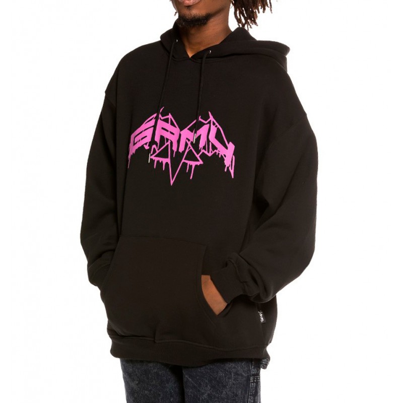 Sudadera Grimey con capucha en color negro y rosa.