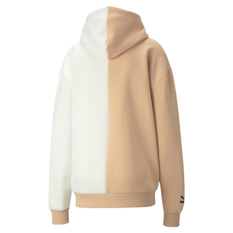 Sudadera de la marca Puma en color beis, blanco y negro.